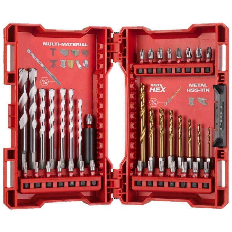 • 7 x SHOCKWAVE™ multi-material 1/4" Hex drill bits: ⌀ 4 / 5 / 5.5 / 2 x 6 / 8 / 10 mm.